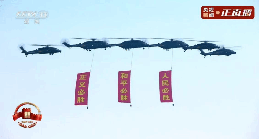 上午9时整,随着天安门广场上五星红旗冉冉升起,全场师生起立高唱国歌,注视着屏幕中庄严肃穆的升旗仪式。阅兵式开始后,空中护旗梯队护卫着中国共产党党旗、中华人民共和国国旗、中国人民解放军军旗飞越天安门上空,26架直升机组成的“80”字样编队与“正义必胜”“和平必胜”“人民必胜”三条巨型标语划破长空,瞬间点燃了现场师生的热情。
