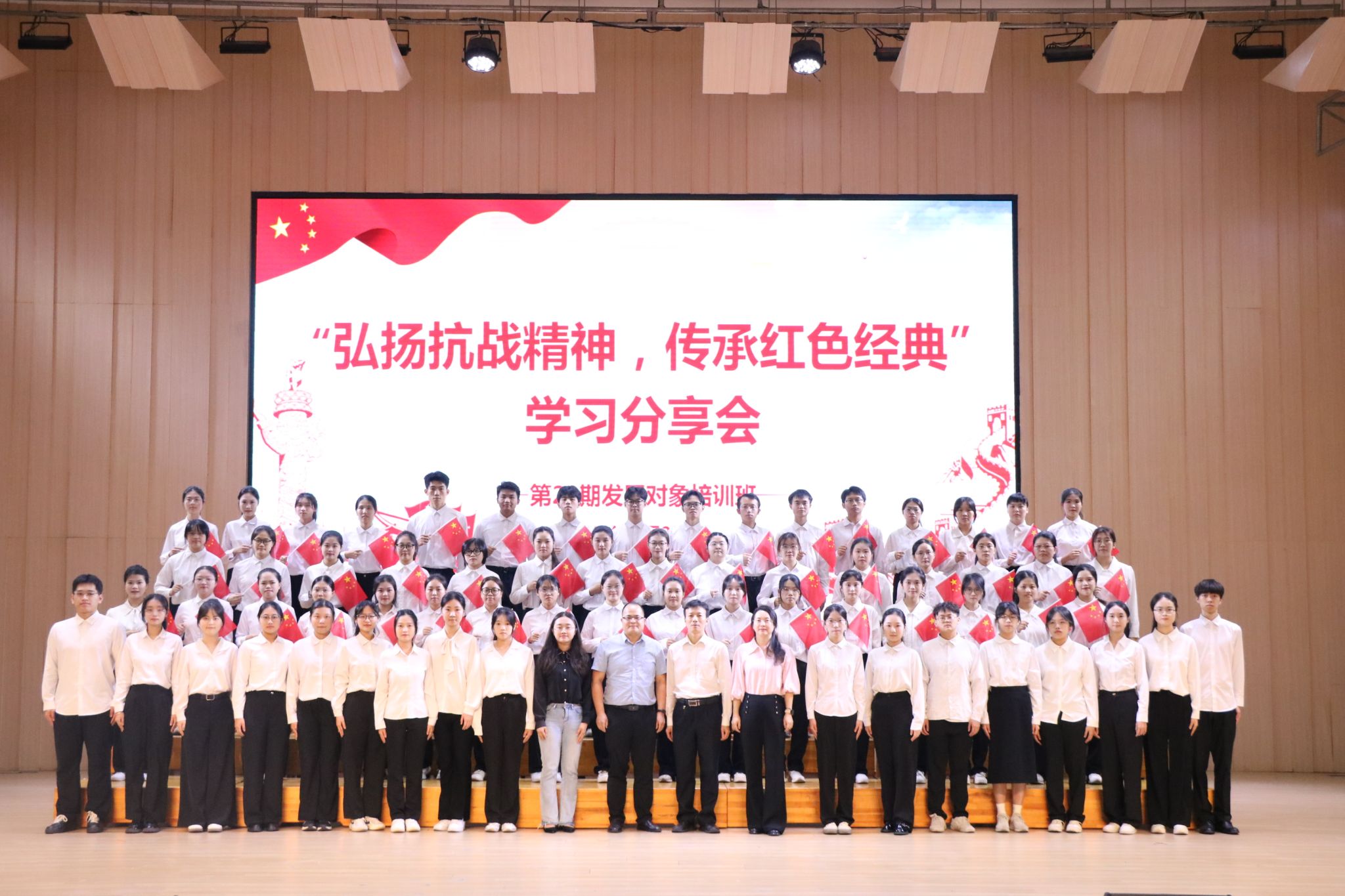 会前,各二级学院组织发展对象通过红歌学唱、专题研讨、集中汇报等方式学习抗战时期红色经典歌曲。在分享会上,各二级学院发展对象代表围绕《义勇军进行曲》《松花江上》《黄河大合唱》《游击队歌》等抗战时期红色经典歌曲,立足学院实际,结合自身学习思考,对抗战时期红色经典歌曲的创作背景、历史故事、精神内涵等进行阐述。各学院学员代表还共同唱响《没有共产党就没有新中国》,青年学子们在红色旋律中重温抗战历史、感悟民族风骨。