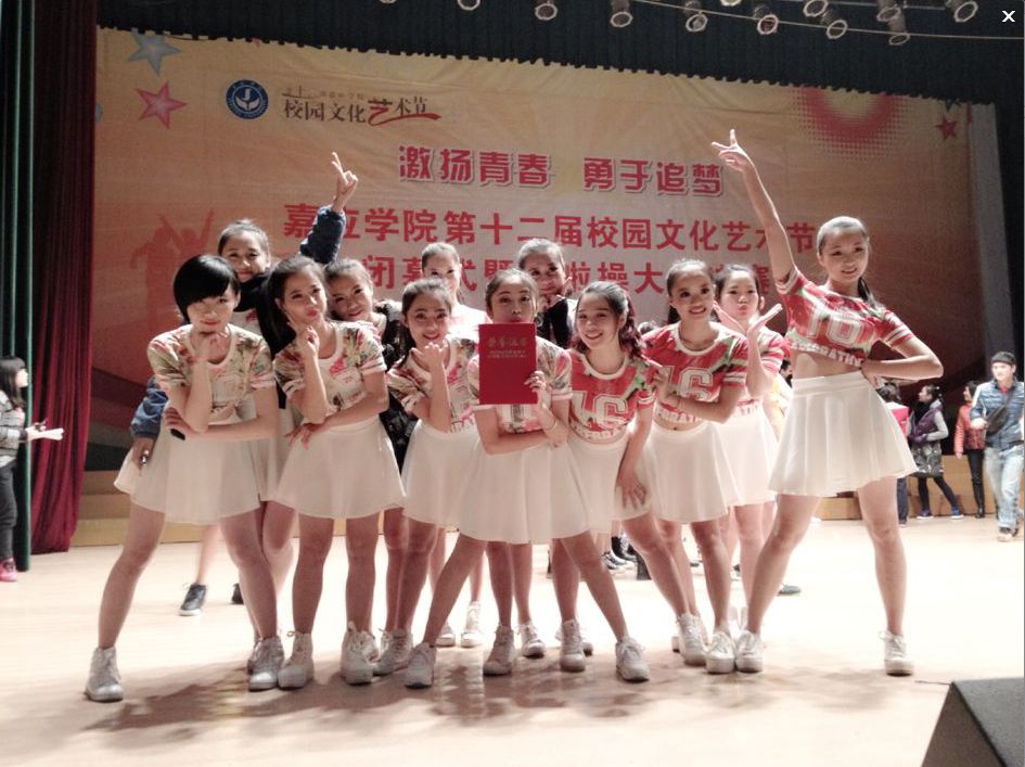 2013年12月11日晚,由校团委主办的嘉应学院第十二届校园文化艺术节闭幕式暨啦啦操比赛在德隆会堂如期进行。我院啦啦操队在比赛中发挥出色,在十二个院系的激烈角逐中脱颖而出,荣获本次大赛二等奖。 我院十二名啦啦操队员以整齐的动作,蓬勃的朝气,新颖的动作编排,赢得场内热烈的阵阵掌声。通过这次比赛,不仅能让队员们懂得了团结的重要性,更重要的是能把我院亮丽风采的一面展现出来.