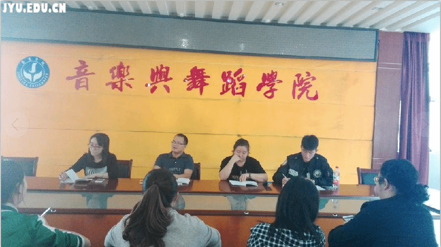 2017年10月27日,嘉应学院音乐与舞蹈学院在活活教育艺术大楼A303会议室,面向15、16、17级班长召开班长座谈会,由音乐与舞蹈学院辅导员林伟东老师、辅导员戴斯谨老师、辅导员温梅琴老师主持会议,学长辅导员张宇以及各班班长参与会议。