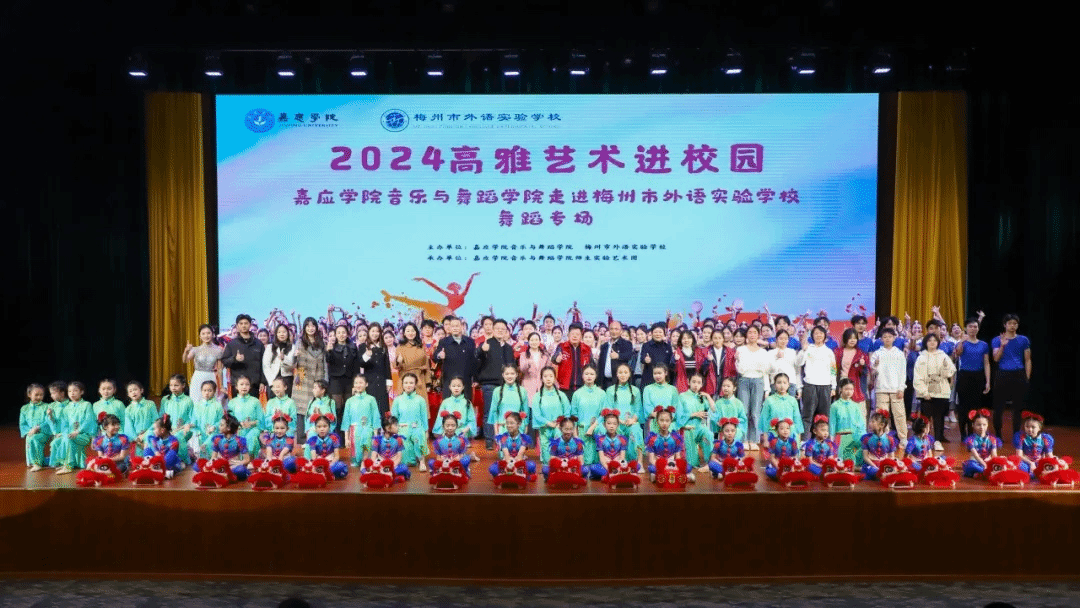 2024年12月15日晚19:30,由嘉应学院音乐与舞蹈学院、梅州市外语实验学校主办,嘉应学院音乐与舞蹈学院师生实验艺术团承办的“2024高雅艺术进校园——舞蹈专场”在梅州市外语实验学校演艺厅隆重举行。原广东省政协常委、香港昌盛集团董事局主席、梅州市外语实验学校理事长邹锡昌,梅州市政协党组成员梁维,嘉应学院音乐与舞蹈学院党委书记高华姗、副院长张贵,梅州市外语实验学校校长曹旭飞、党支部书记陶伟、驻校理事陈惠勤与近900名师生,共同参与此次盛会。