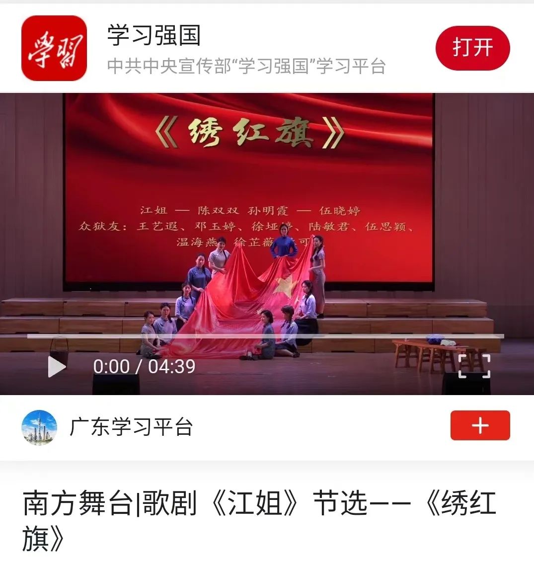 近日,我院《信仰的力量》红色经典歌剧音乐会中的歌剧《江姐》节选——《绣红旗》荣登“学习强国”平台,表演者来自我院张贵教授教学班同学。