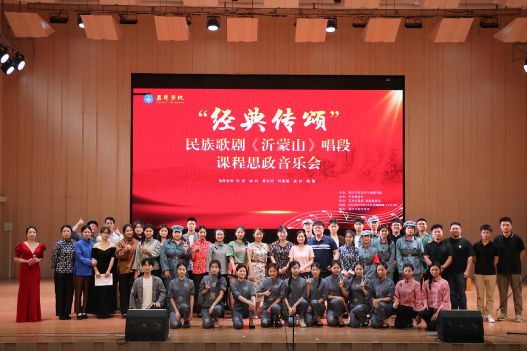 2023年06月08日星期晚上19:30,由嘉应学院音乐与舞蹈学院主办、声乐教研室承办、艺术实践部、舞蹈教研室协办的“经典传颂”民族歌剧《沂蒙山》唱段课程思政音乐会,在嘉应学院音乐厅举行。