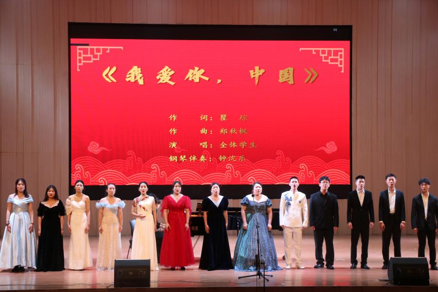 欢聚的时刻总是太短,喜悦的今宵总是难忘,岁月如诗,句句悠扬,情谊如歌,余音绕梁。“聆听钟声”音乐会呈现这份视听盛宴、这份感动和美好将永远留存在我们的心中,让我们相约在未来前行的路上一路攀高,彼此照亮。同学们经过这一次的舞台实践,均能很好地结合作品在舞台上运用表情、体态、情绪等方面的技巧,通过声音、表演和情感来具体塑造作品的人物形象,不断提高驾驭作品的能力,提高演唱艺术感染力和舞台表现力。音乐会在同学们的《我爱你,中国》这首歌落下帷幕。