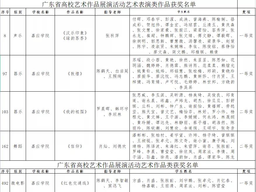 根据《广东省教育厅关于举办全省高校艺术作品征集展演活动的通知》,在广东省高校艺术作品征集展演活动获奖名单中我院喜获佳绩!