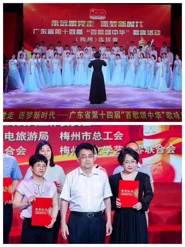 日前,广东省第十四届“百歌颂中华”歌咏活动(梅州)选拔赛在梅州市广播电视台演播厅举行,本次决赛全市共有十四个合唱团参加角逐,我院派出的“啀个”合唱团在指挥张秋萍老师的带领下,以一首《把一切献给党》最终获得全场第一名(金奖),将与同获金奖的五华县合唱团一起代表梅州市参加广东省“百歌颂中华”的决赛。