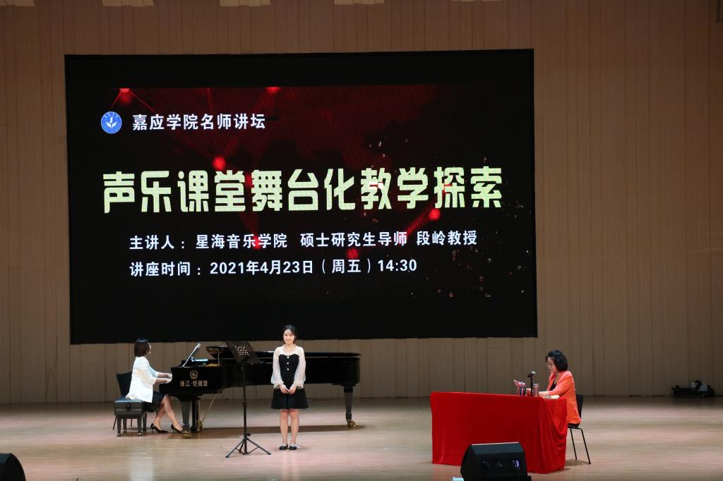 4月23日,著名女高音歌唱家、星海音乐学院硕士研究生导师段岭教授到我院“名师讲坛”为师生们作《声乐课堂舞台化教学探索》的学术讲座。此次讲座及音乐会由嘉应学院教务处以及音乐与舞蹈学院主办,音乐与舞蹈学院声乐教研室承办,共计师生三百多人参加了此次讲座。