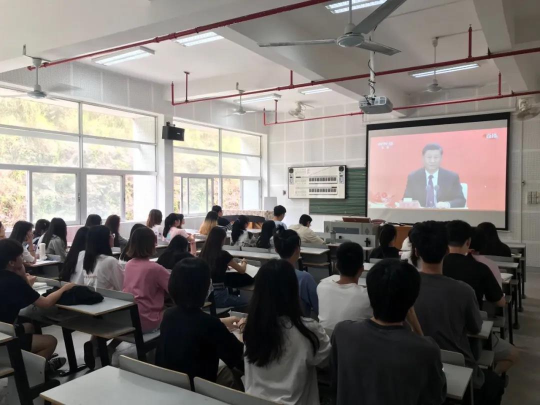 为更好地覆盖学习习近平总书记重要讲话精神,学院提前进行学习教育通知,结合学院教学实际情况进行有效部署,教工党支部结合网络新媒介等方式自行开展学习,学生党支部、团学干部等于活活艺术教育大楼304、305课室进行集中观看学习。其他无课学生集中到学校文科教学楼121教师集中观看学习。此次的直播学习是一场生动的思想政治理论学习课,学院将此次学习融入到师生思政教育工作中,是一场生动的思想政治理论学习课,进一步增强中国特色社会主义道路自信、理论自信、制度自信、文化自信。
