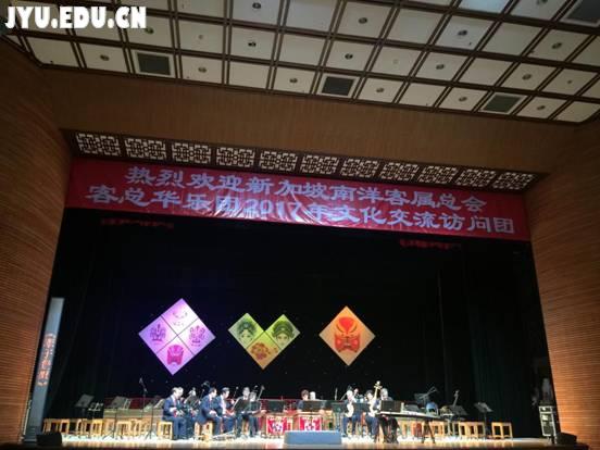 为提高民乐团成员综合素质,拓展视野,更好的传承客家优秀音乐文化,2017年9月26日晚,我院专门组织民乐团全体同学赴广东汉剧传承研究院牡丹剧场观看“汉乐汉曲”音乐会。此次音乐会由新加坡南洋客属总会华乐团与梅州广东汉乐协会汉乐团携手合演,特邀刘海峰担任乐团指挥。南洋客属总会会长张家胜,广东汉乐荣誉主席丘定环、原梅州军区司令刁耀杰等均出席观看演出。