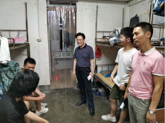 为了进一步了解新生入学情况,让新生更快地适应大学生活,引导学生加强安全和宿舍卫生工作,9月18日晚我院党委书记高华珊、院长李君、副院长肖灿老师及新生班主任、辅导员、老生代表走访了学院20级学生宿舍,深入了解同学们的学习和生活情况,并察看了新生宿舍的卫生状况、内部设施和安全问题等,为同学们送上了亲切的关怀与慰问。