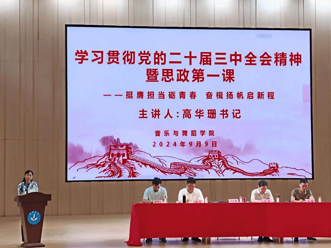 为深入学习宣传贯彻党的二十届三中全会精神,坚持立德树人的根本任务,秉承“勤俭诚信 立己树人”的校训,引导新生以昂扬向上的精神面貌迎接崭新的大学生活,转变思想观念,做好大学生涯规划。9月9日上午,我院2024级新生开学典礼暨思政第一课在活活艺术中心音乐厅隆重举行。学院党委书记高华珊、院长李君、副院长张贵、副院长肖灿,各教研室主任、办公室主任、教务秘书、新生班主任、辅导员及330多位新生参加开学典礼。