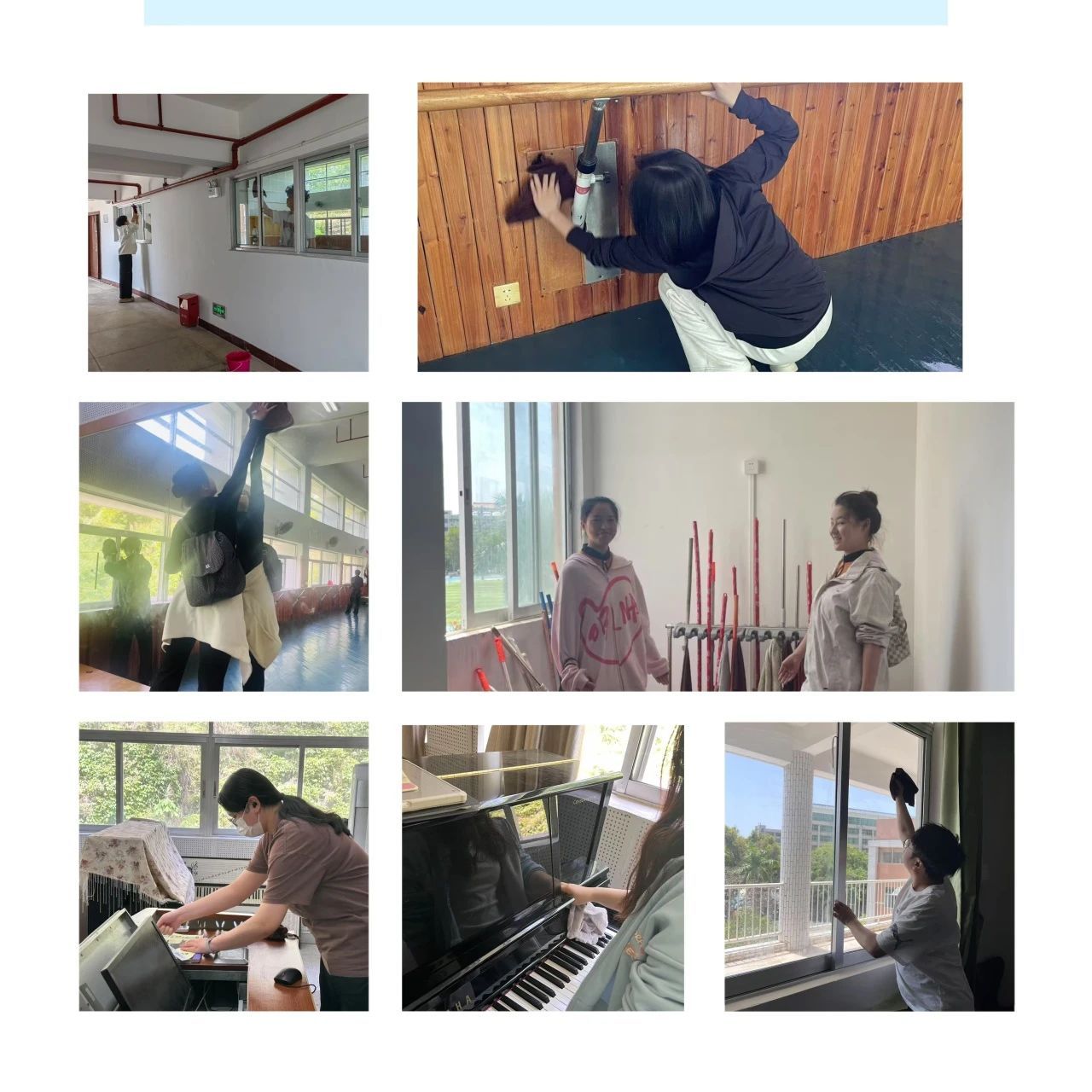 音乐与舞蹈学院积极响应学校迎评促建号召,4月16日组织开展了一场主题为“提升校园卫生,迎接评估建设”的卫生大扫除活动,旨在营造整洁优美的校园环境,增强师生健康意识,同时培养学生的劳动精神。
