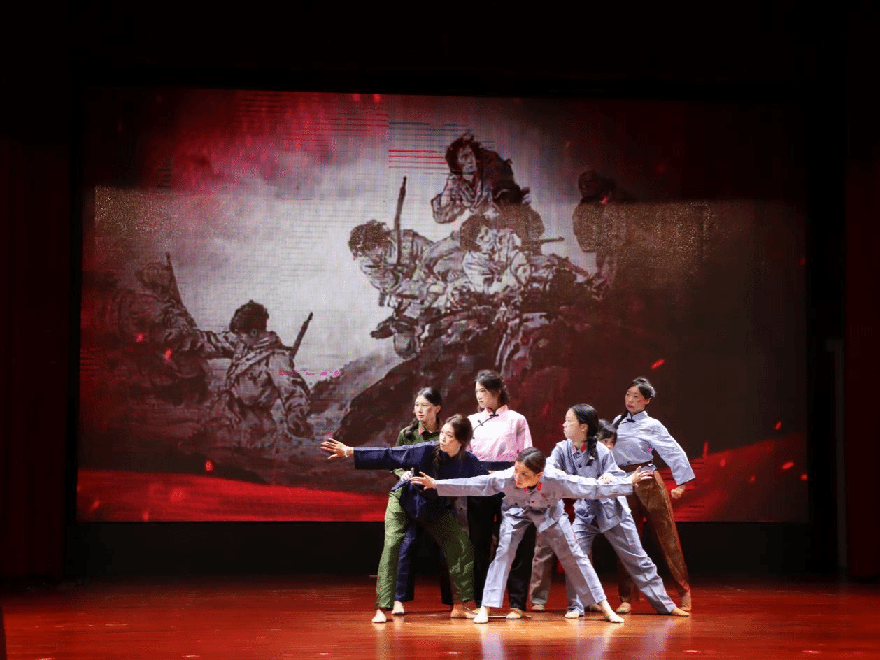 非遗花朝戏《你我鸿雁两分开》以传统戏曲惊艳全场,罗文浩古诗词歌曲《念奴娇·赤壁怀古》唱响千年豪情;舞蹈《八女投江》以震撼表演传递红色精神,林依新、黄莹安的二重唱《灯火里的中国》则深情礼赞新时代。
