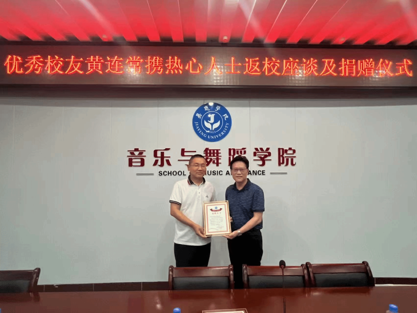 2025年5月23日,嘉应学院1995届优秀毕业生,现任深圳大学附属教育集团实验小学党支部书记、校长的黄连常同志在这个烈日炙烤、热浪滚滚的炎炎夏日,携手深圳市腾龙信息技术有限公司董事长白重峰先生、深圳市东海玻璃幕墙有限公司董事长姜东升先生、以及深圳市凯禾粤名家具有限公司董事长杜新友先生,为舞蹈系的师生们现场捐赠了七万元人民币,用来购置四间舞蹈教室的空调。