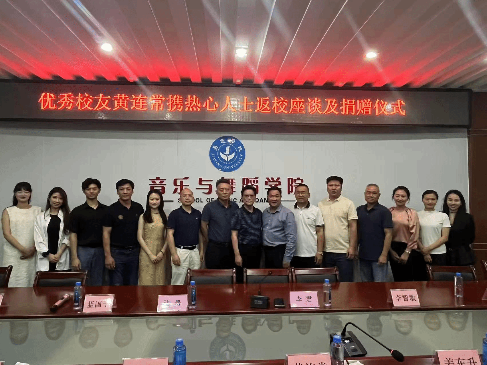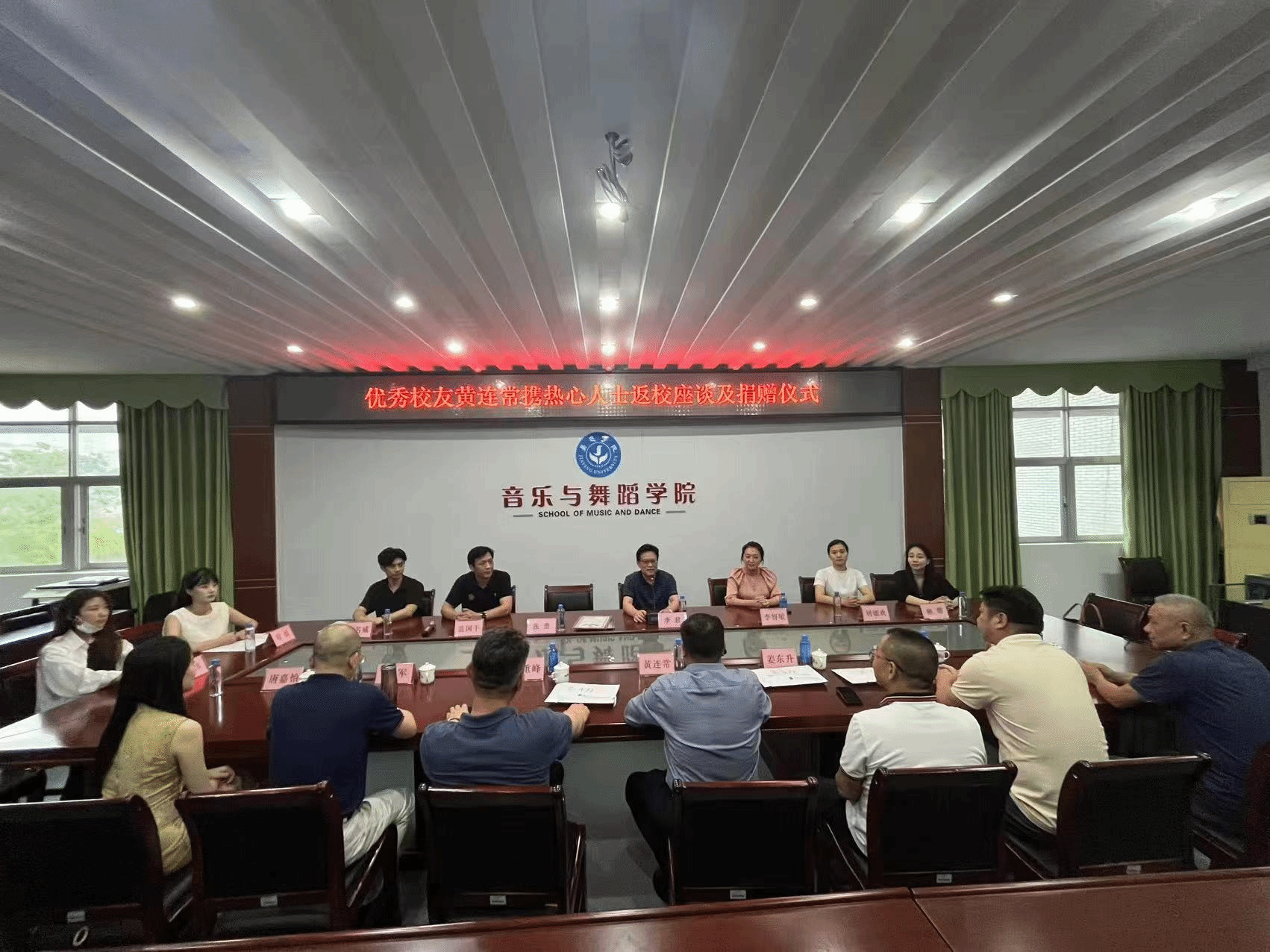 接下来李君院长携舞蹈系全体教师,与黄连常校长等人一起在学院会议室进行了座谈会及捐赠仪式。