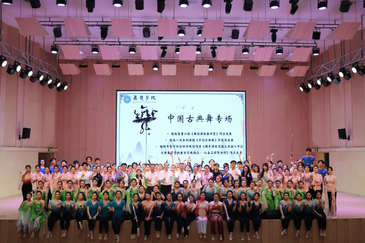 2025年5月28日晚上19:30,由嘉应学院音乐与舞蹈学院主办,舞蹈系与实践教研室承办的《中国古典舞》教学成果汇报专场在嘉应学院音乐厅如期举行。本次的专场汇报是舞蹈学专业校级一流课程《中国古典舞》的阶段性建设成果与梅州市哲学社会科学规划项目《探索课程思政元素融入中国古典舞课堂的教学实施路径--以嘉应学院为例》项目成果的集中展示。