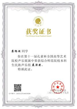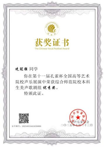此次展演活动,是对我院声乐教育教学成果的一次检验,彰显了我院声乐教学水平的整体提升,充分体现出我院对学生舞台艺术实践能力培养的高度重视,也是对参赛选手及指导老师们辛勤付出的肯定。此荣誉将激励更多师生在未来艺术道路上继续追求卓越,勇攀高峰。