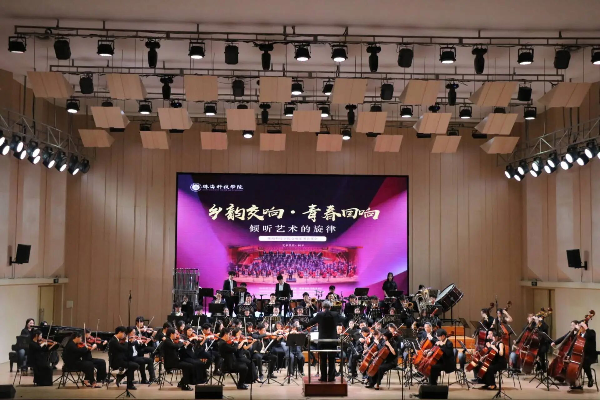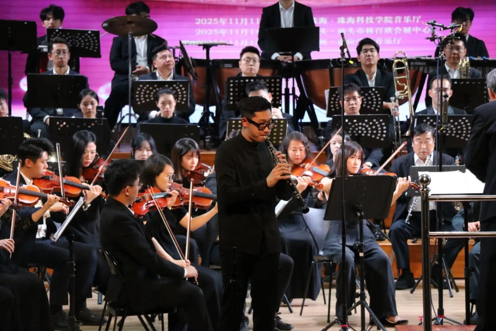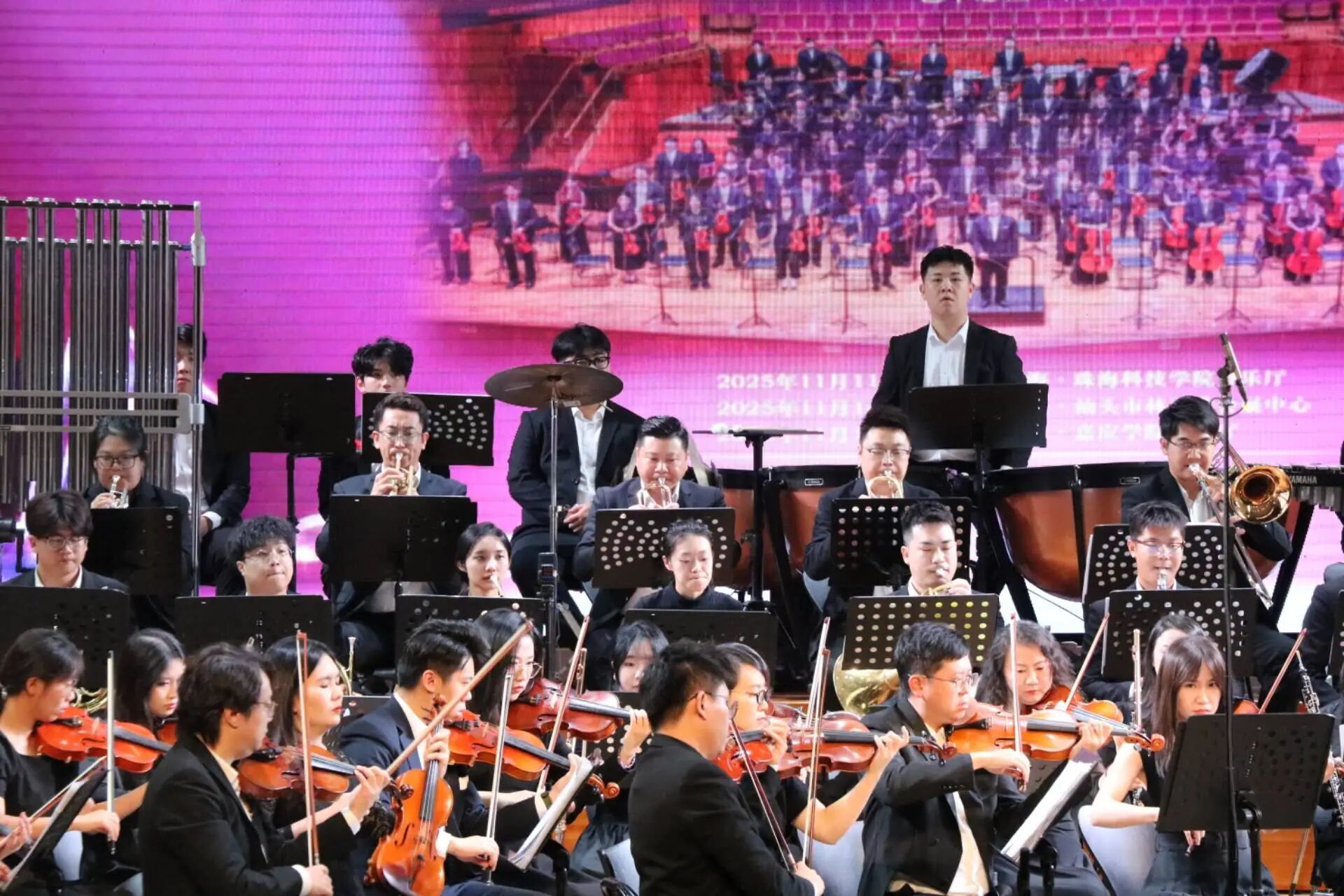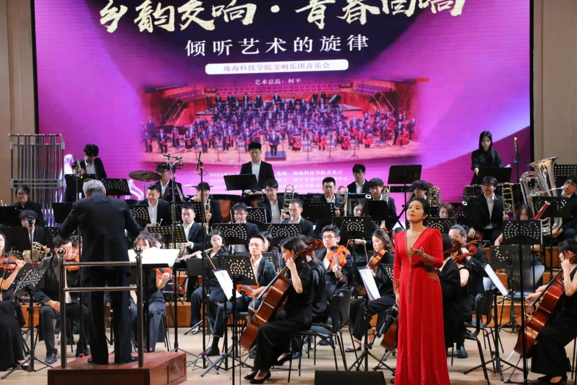 2025年11月15日,一场音乐盛事于我院音乐厅璀璨启幕。著名音乐家何平教授,以其卓越的艺术造诣与深厚的音乐情怀,携手珠海科技学院,共同奏响了“乡韵交响 青春回响”交响乐团音乐会的激昂篇章。我院院长李君、副院长肖灿出席此次活动,欣赏这场音乐的盛宴。此次音乐会,宛如一场盛大的艺术洗礼,以交响为笔,蘸满东西方音乐的独特韵味,饱浸古今音乐的精髓,精心绘就了一幅跨越东西文化、贯穿古今岁月的壮丽音画。每一个音符的跳跃,每一段旋律的流淌,都仿佛在诉说着音乐的故事,传递着无尽的情感与力量,让现场观众沉浸其中,感受音乐的独特魅力。