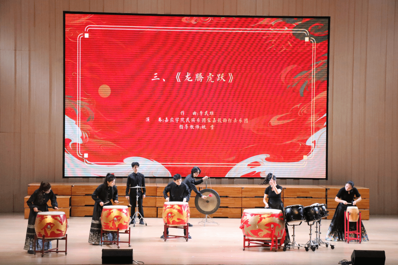 打击乐合奏《龙腾虎跃》以密集的鼓点和铿锵有力的节奏,模拟出巨龙腾飞的磅礴气势,充满力量感与感染力。