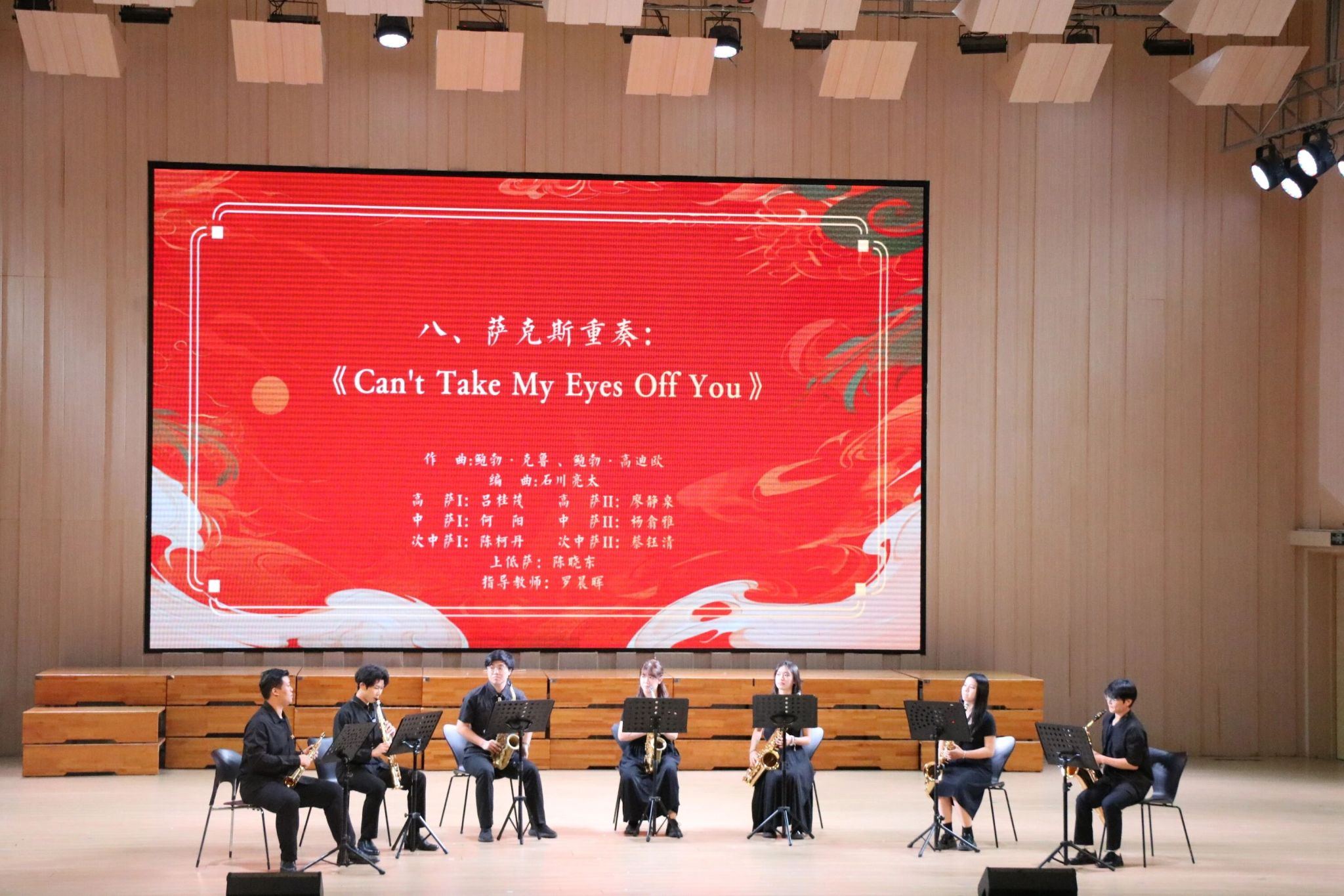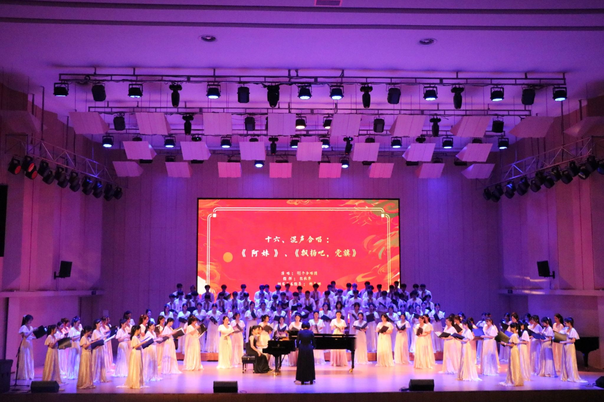 最后由张秋萍老师指挥的合唱团作品《阿妹》,旋律清新质朴,和声温暖治愈,满是乡土气息与人文关怀;《飘扬吧,党旗》则气势恢宏,歌声铿锵有力,表达了对党的无限崇敬与热爱,为整场演出画上圆满句号。