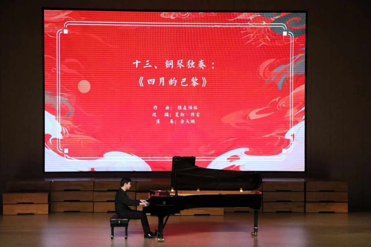 余天鹏老师带来的钢琴独奏《四月的巴黎》,琴音灵动浪漫,仿佛将听众带入春日巴黎的街头,满是法式风情。