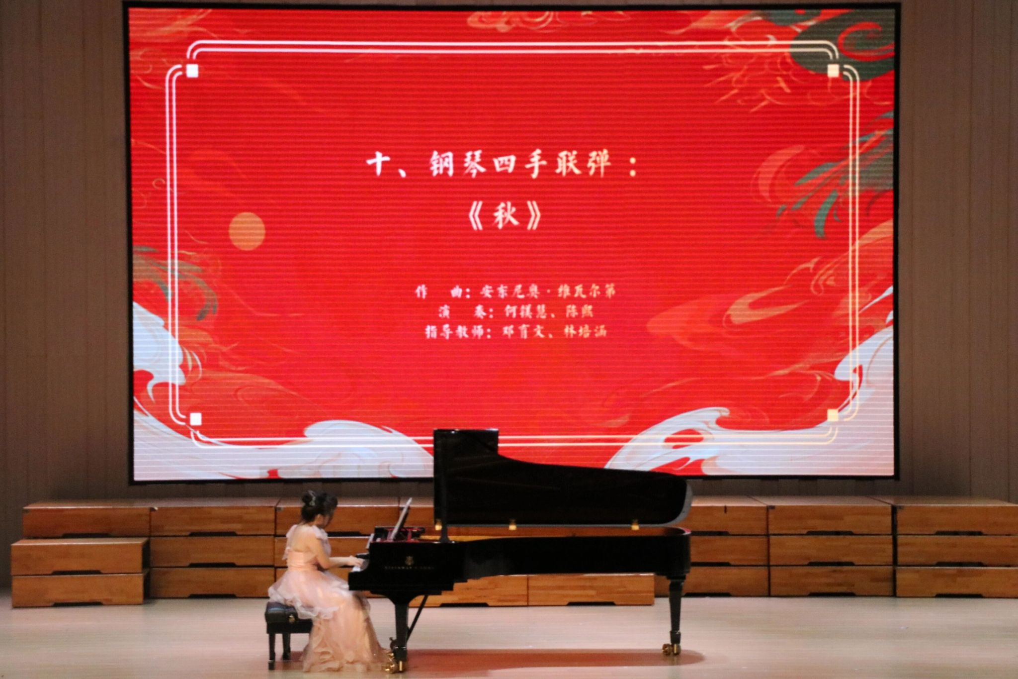 钢琴四手联弹《秋》旋律悠扬婉转,演奏者指尖下的黑白琴键间流淌出秋日的静谧与诗意,让人沉浸其中。