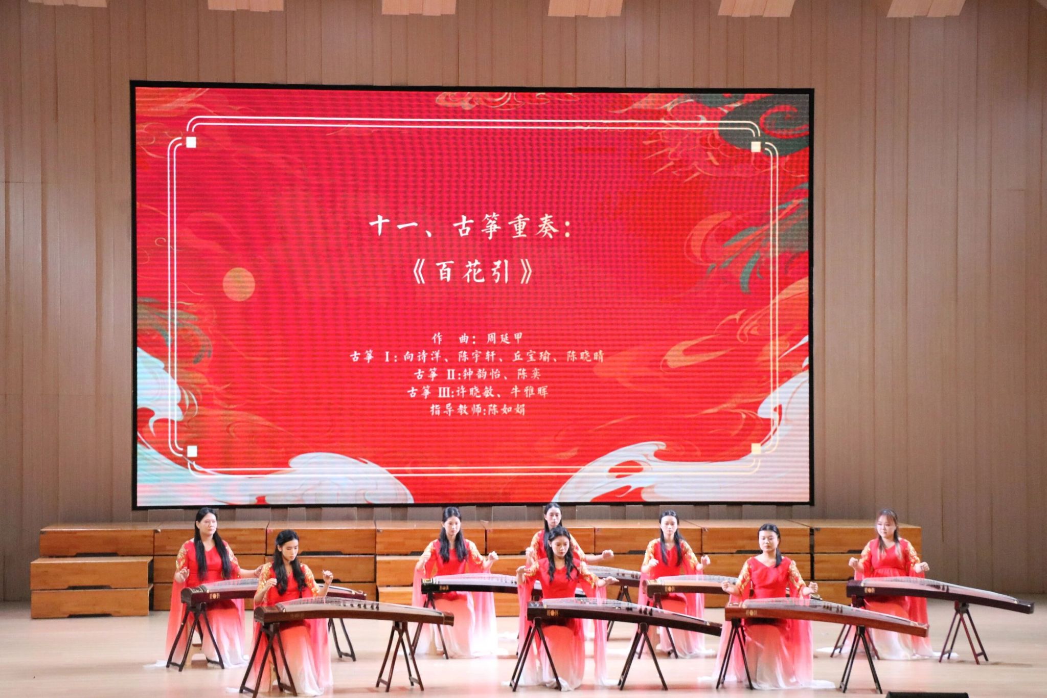 古筝重奏《百花引》以清脆典雅的音色,描绘出百花齐放的绚烂景象,尽显传统乐器的魅力。
