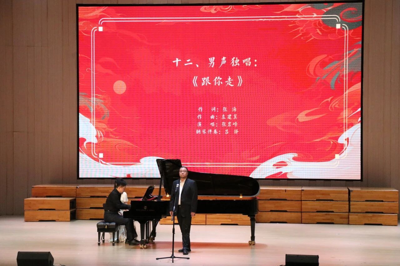 张岩峰老师带来的男声独唱《跟你走》,歌声浑厚有力,传递出坚定的信念与追随的决心,情感真挚动人。