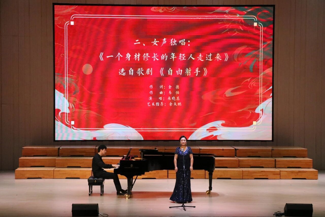 女生独唱曲目《一个身材修长的年轻人走过来》选自歌剧《自由射手》,来晓茜老师用细腻嗓音诠释角色情感,将歌剧片段的浪漫与张力展现得淋漓尽致。