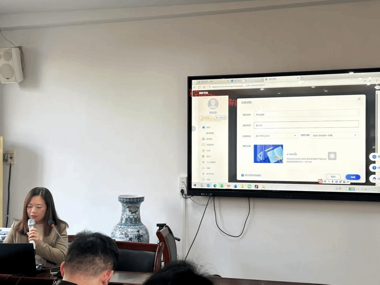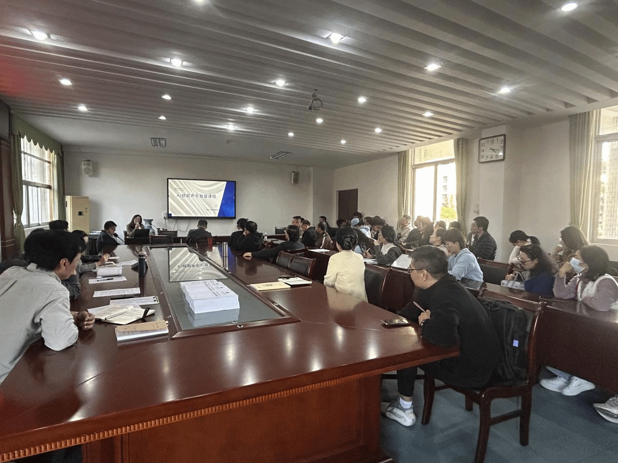 随后,黄东阳副教授以“AI赋能声乐智慧课程建设”为主题,紧密结合声乐学科的教学特点,探讨把AI歌手、AI歌曲、声音体验与检测、音准节奏实时评测等前沿的AI技术引入到声乐课程中。她指出将AI技术应用于高度依赖主观感受的声乐教学,实现教学过程的量化诊断与个性化干预,旨在打造一个 “资源可视化、知识系统化、辅导个性化” 的现代化教学平台。在实操演示环节,黄东阳副教授通过智慧课程搭建链路向老师们演示了超星学习通的建课流程、AI教案、AI课件、AI出题、AI答疑等强大功能。老师们感受到AI助教给教学带来的革命性变化。