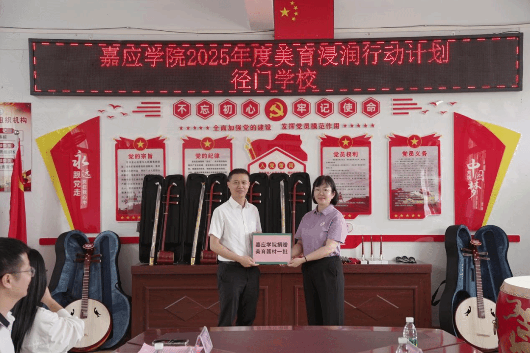 随后,活动举行了美育器材捐赠仪式。嘉应学院向径门学校捐赠了一批急需的美育教学器材,以实际行动弥补了学校在艺术教育硬件上的短板,为后续美育课程的顺利开展提供了坚实的物质保障。