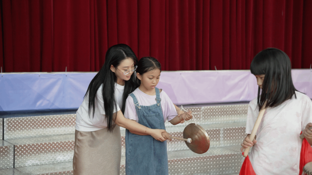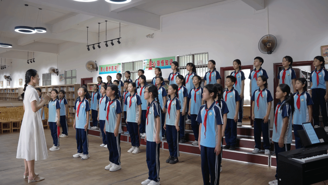 与此同时,在潭江镇中心小学,美育浸润行动同样结出硕果。团队仅用两周时间,便高效完成了学校合唱队的排练、新节目的编创及高质量展演录制工作,整个过程顺利而富有成效。这次突击集训让潭江中心小学合唱队的综合实力实现了跨越式提升。