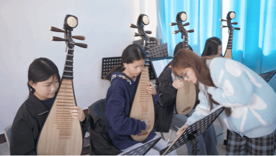 以“传承童趣民乐,奏响求知乐章”为主题的琵琶合奏《背着书包上学堂》排练活动,在校园里掀起一股民乐学习热潮。活动以校园民乐团为组织单位,我院琵琶专业的学生进校指导,旨在用传统民乐演绎经典童谣,让同学们在指尖流转的旋律中,感受童年求知的快乐与民乐艺术的魅力。